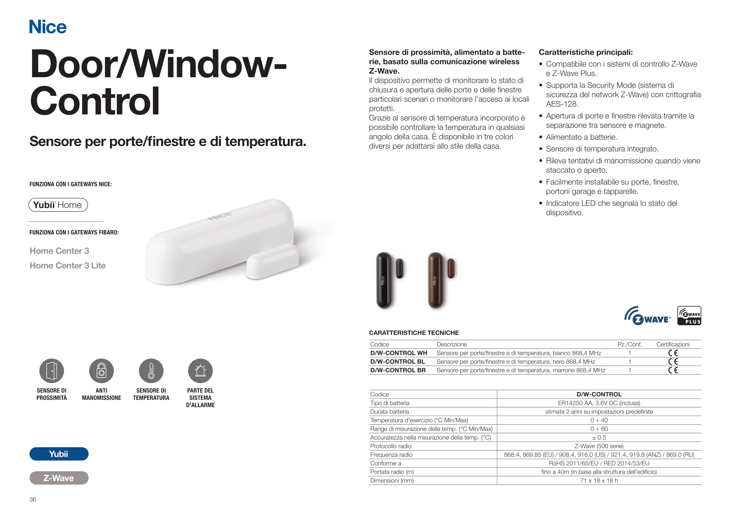 • Compatibile con i sistemi di controllo Z-Wave e Z-Wave Plus;